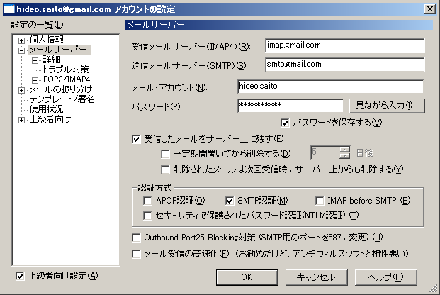 I サーバーを検索中 - smtp.mail.yahoo.co.jp